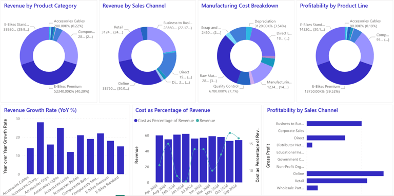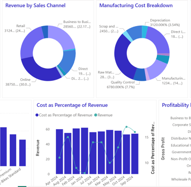 Effective financial planning requires more than just high-level summaries. Below is a demonstration of our deep-dive analytics framework designed for the manufacturing sector. By integrating production data with financial reporting, we provide a unified view of your business health—tracking variable costs, analyzing overhead allocation, and pinpointing the exact drivers of revenue growth across all product lines and sales channels.